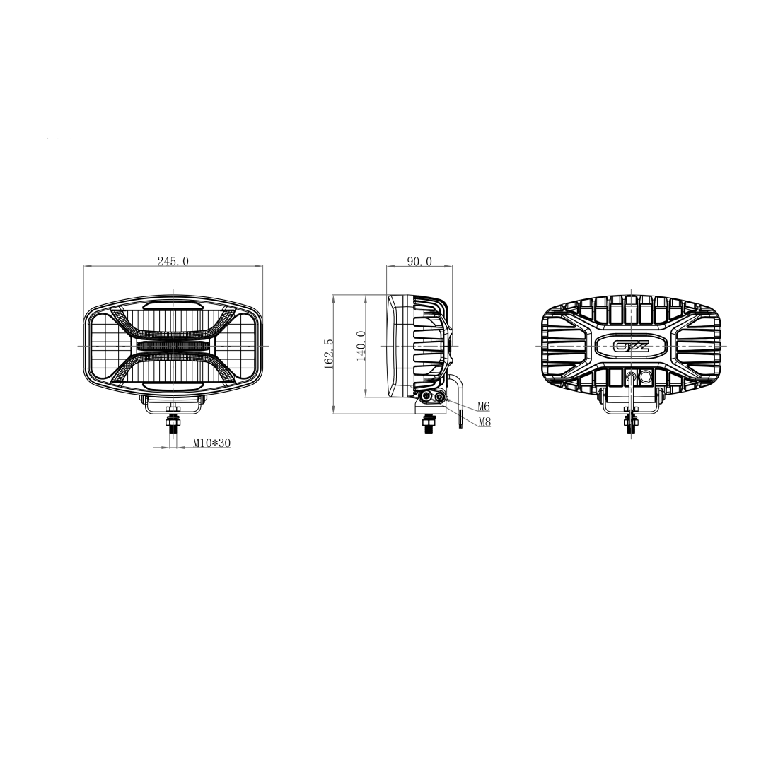 LED cestovna svjetiljka marke OZZ opremljena dinamičnim pozicijskim svjetlom u bijeloj i narančastoj boji, koje se aktivira tijekom kretanja, pružajući nevjerojatan vizualni efekt.