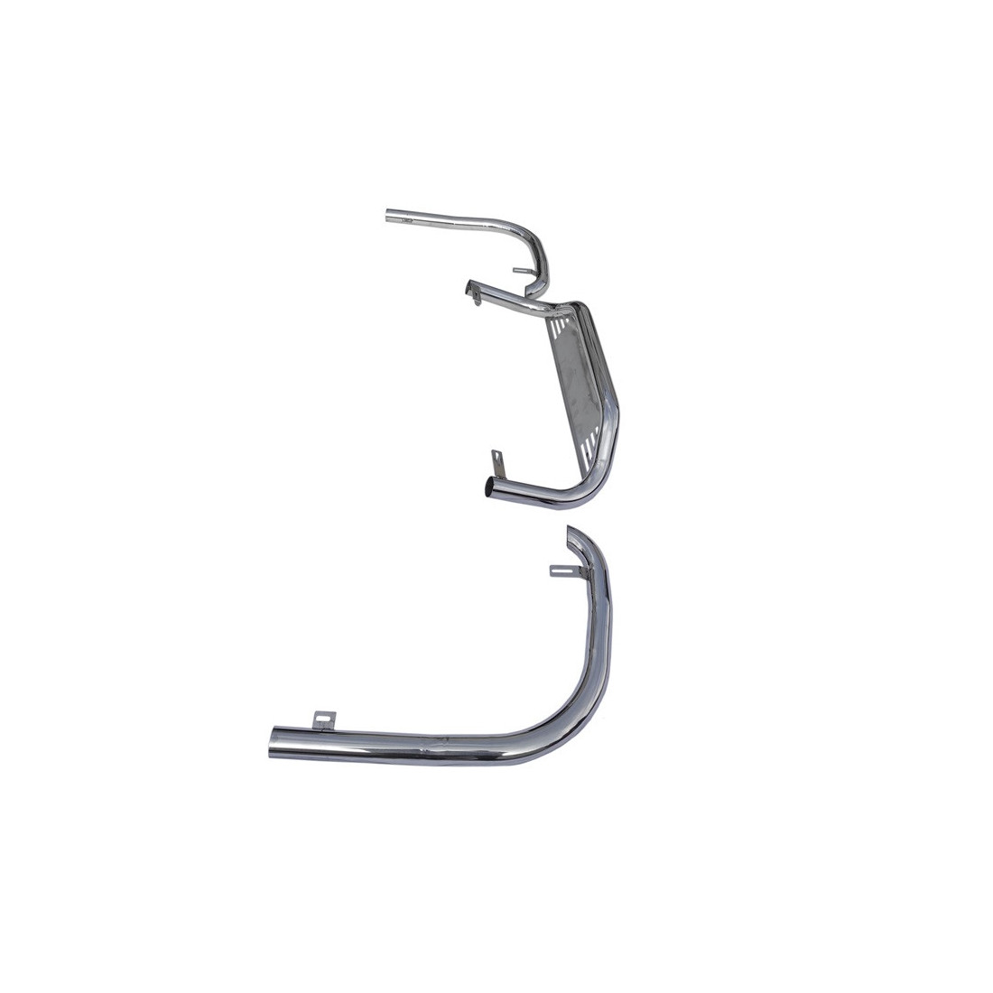 Cijev izrađena od zrcalno sjajnog nehrđajućeg čelika (304). Trodijelna verzija - dva bočna kuta plus srednji (okrenuti, brkovi, mjesto za tablicu). Set ručki uključen. Dizajniran za SCANIA NEXT GEN R/S. Cijena po kompletu. Neoriginalni dio dodatne opreme.
