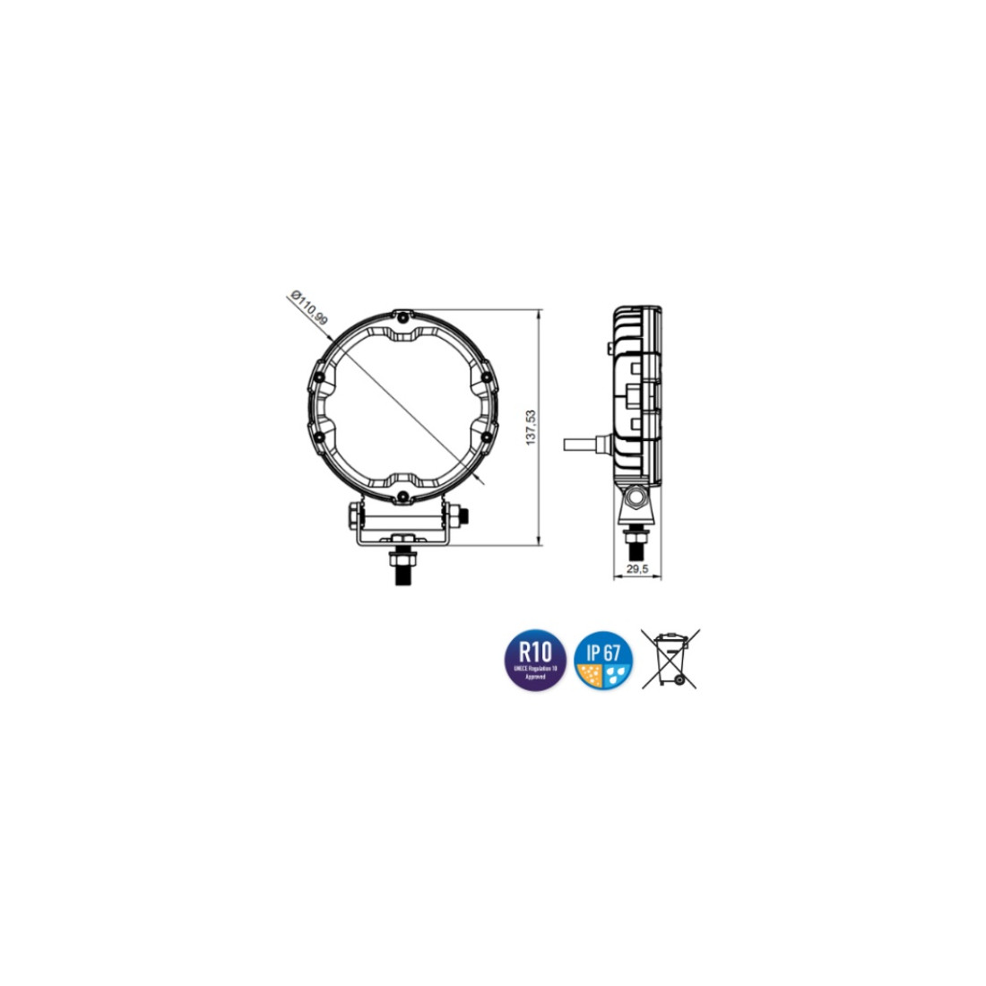 De X SPIDER 3 L0196 LED-werklamp is bestand tegen vocht en stof, wat blijkt uit de IP67-beschermingsklasse.