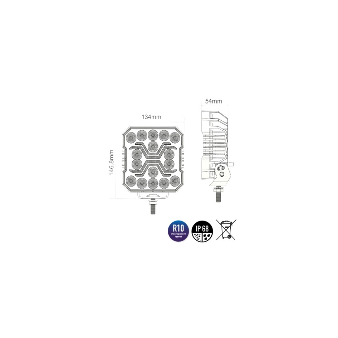 LED-arbetslampan X SPIDER 1 L0194 är vatten- och dammtålig, vilket bekräftas av skyddsklassen IP68.